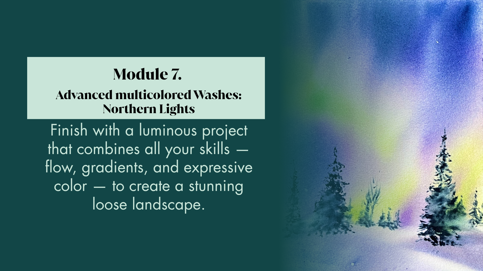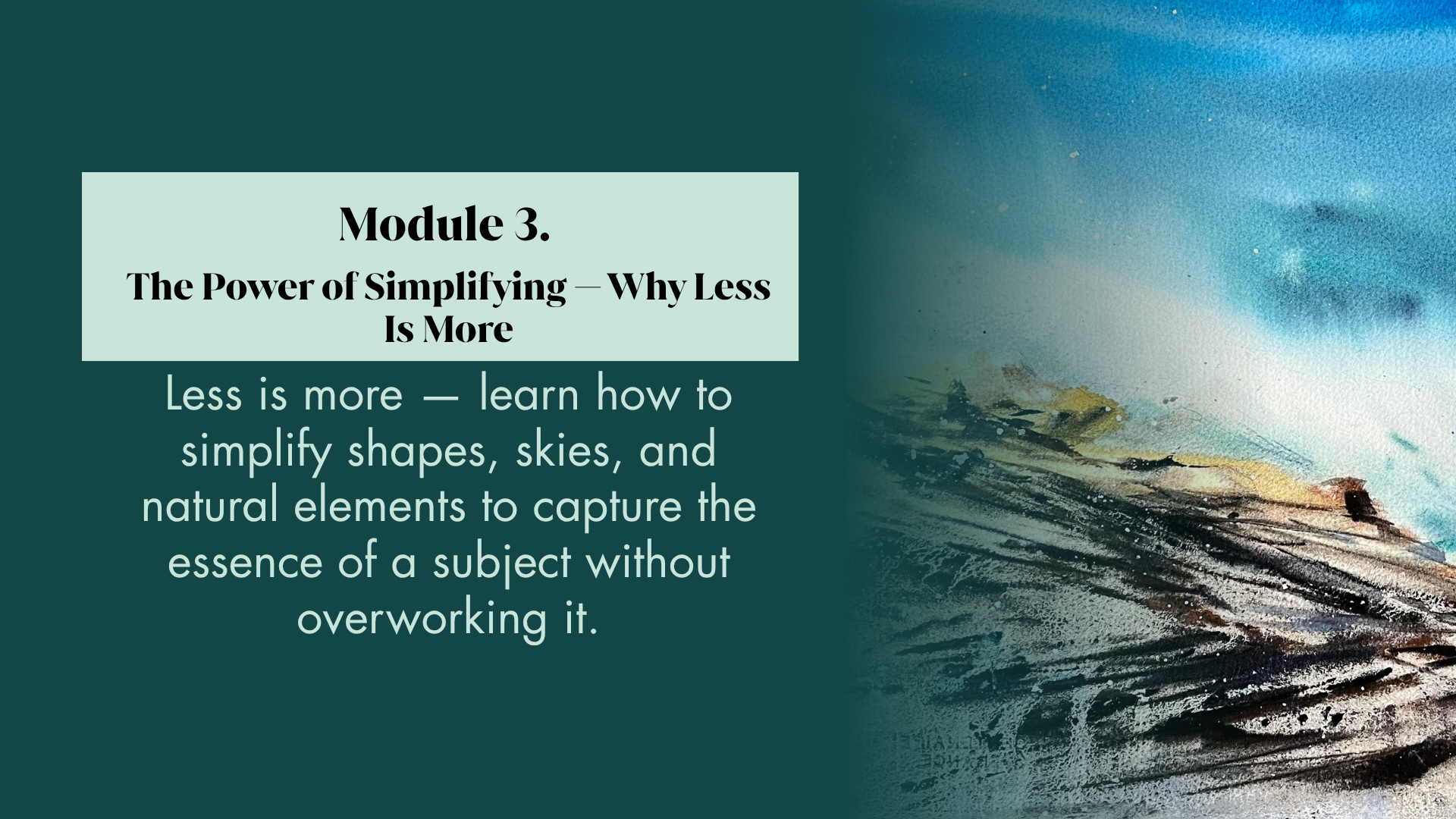 In this course, we’ll explore key techniques like wet-on-wet, gradients, and simplifying forms, helping you paint with confidence and flow. I’ll guide you every step of the way 💪🏼